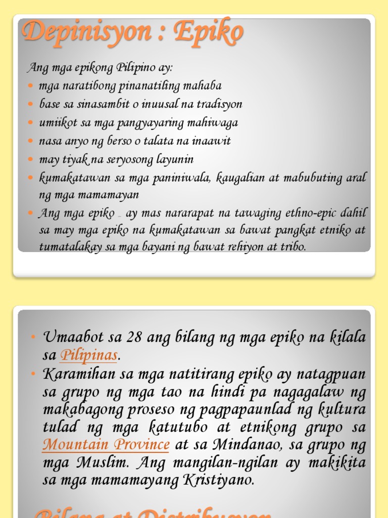 Dahil isang arikipelago ang Pilipinas may ibat-ibang epiko na matatagpuan sa. Bakit Mahalaga Ang Epiko. Bukod dito ang ang pangunahing tauhan ay mayroong mga katangian na higit pa sa.